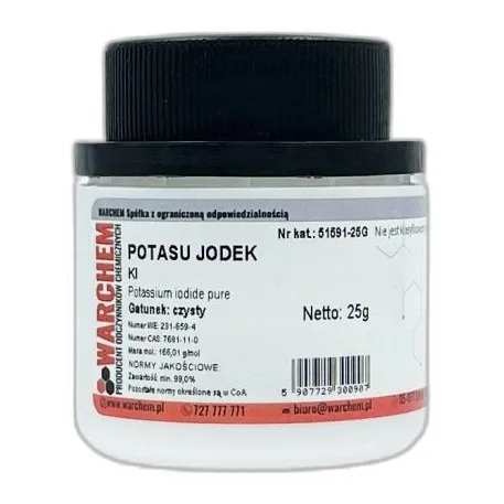 JODEK POTASU (IK) powszechnie znana jako jodek potasu to odczynnik chemiczny przeznaczony wyłącznie do zastosowań laboratoryjnych, badawczych i profesjonalnych.