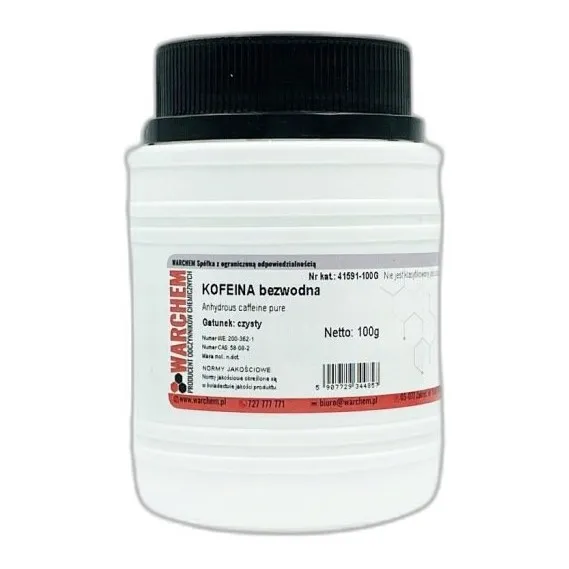 KOFEINA bezwodna (C8H10N4O2) powszechnie znana jako kofeina, tein, guaranina to odczynnik chemiczny przeznaczony wyłącznie do zastosowań laboratoryjnych, badawczych i profesjonalnych.