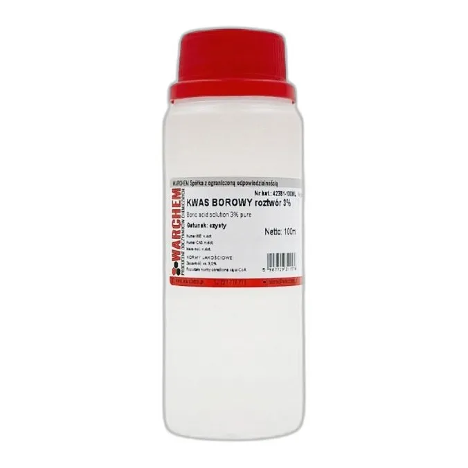 KWAS BOROWY (WODA BOROWA) (BH3O3) powszechnie znana jako kwas borny, kwas borowy to odczynnik chemiczny przeznaczony wyłącznie do zastosowań laboratoryjnych, badawczych i profesjonalnych.