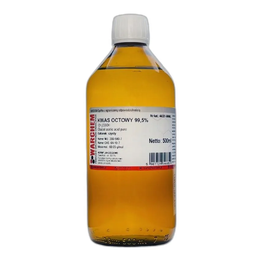 Kwas octowy wysoka czystość (C2H4O2) powszechnie znana jako lodowaty kwas octowy (>99%), ocet (rozcieńczony) to odczynnik chemiczny przeznaczony wyłącznie do zastosowań laboratoryjnych, badawczych i profesjonalnych.